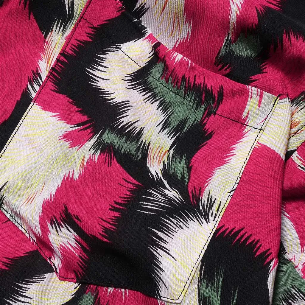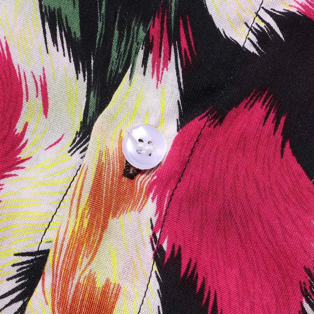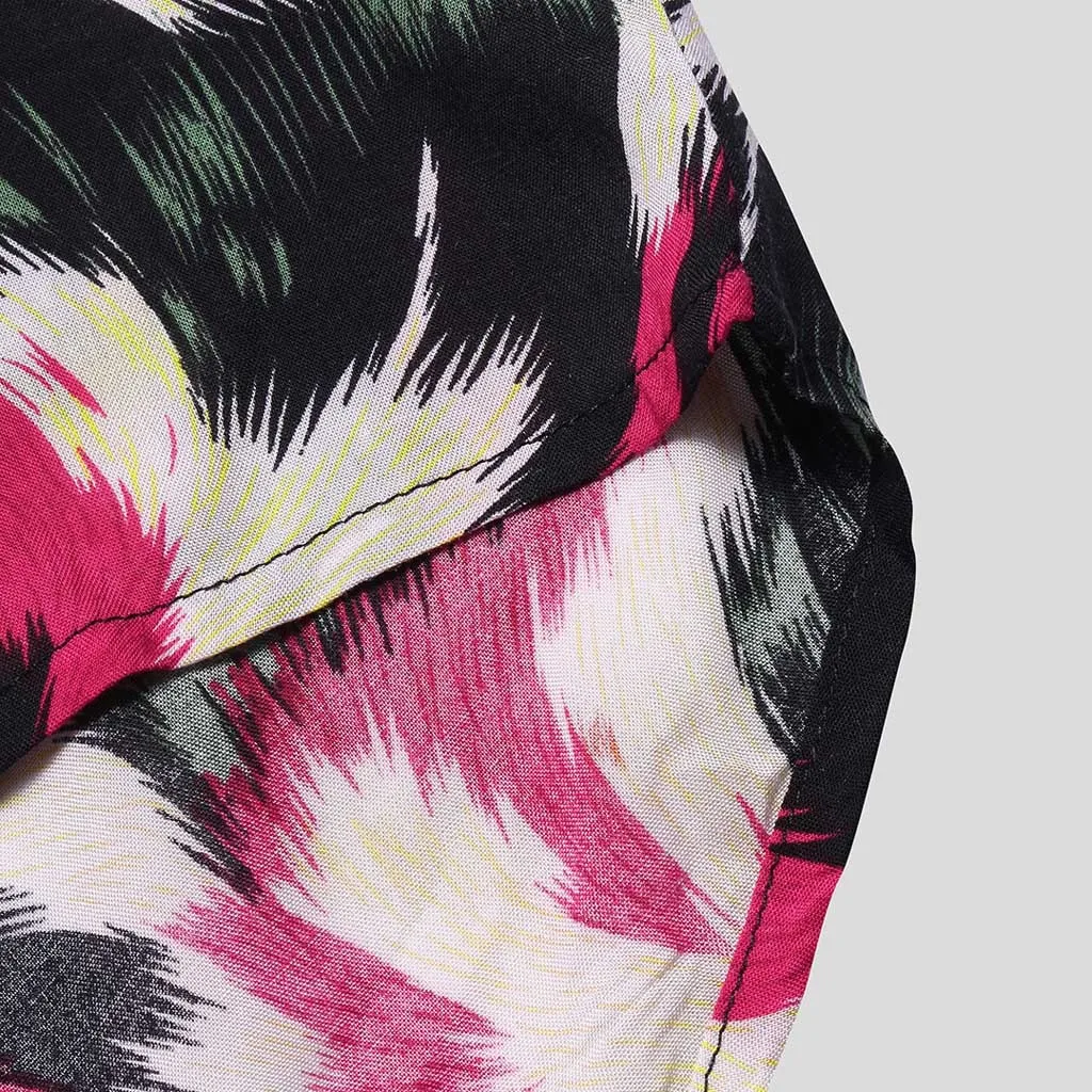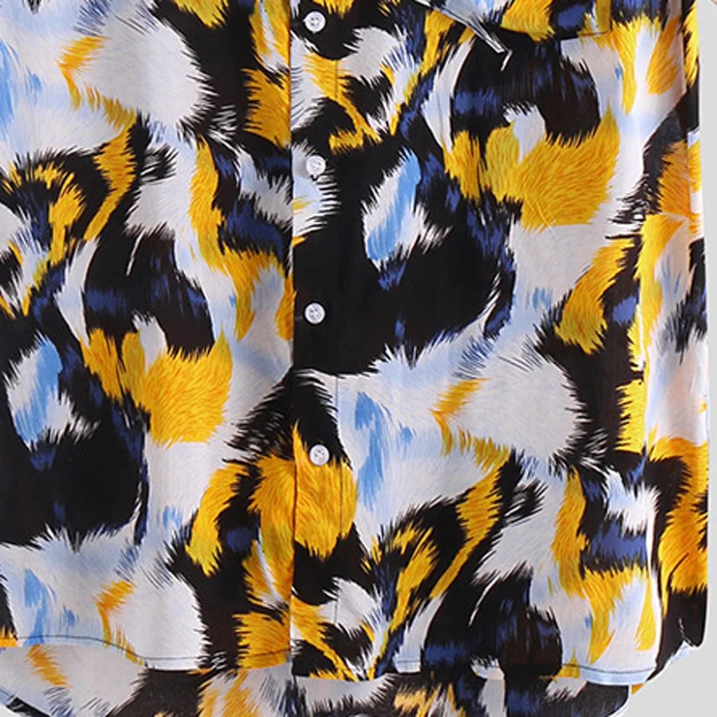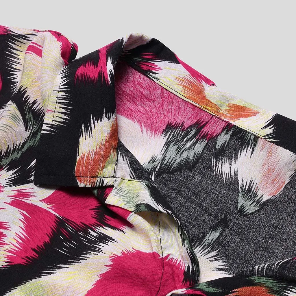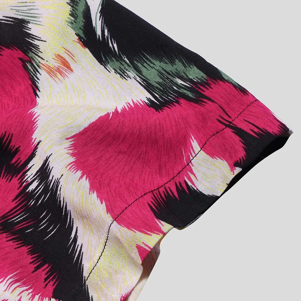 Mens Printed Chest Pocket Turn Down Collar Short Sleeve Casual Loose Shirt
